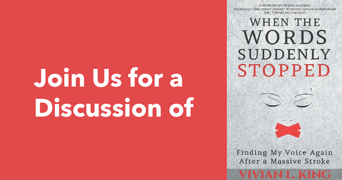 Book descriptionFormer television broadcast journalist Vivian King was taking a seemingly harmless prescription pill and suddenly suffered a stroke that robbed her of her voice. She battled through neurological intensive care and hours of therapy, leading to a miraculous recovery which astounded even her doctors. King admits the medical care she received was unparalleled, but she believes her secret weapons were her faith, family, and friends converging to lead her from trauma to triumph. When the Words Suddenly Stopped is Vivian’s story.